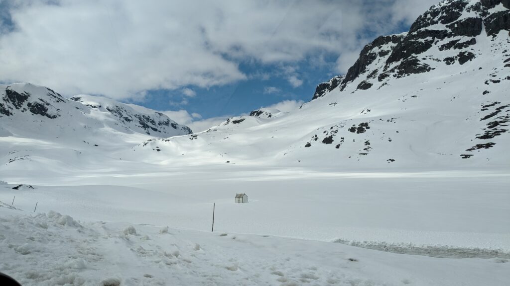3. Mai 2023Mittig in Südnorwegen lag schon ne Menge Schnee. Wir hatten keine Lust mehr auf Schnee. Deswegen machten wir uns auf den Weg zur Küste in Richtung Bergen. In diesen dreieinhalb Stunden Fahrt hat sich die Landschaft so drastisch verändert, einfach unglaublich. Von einer imposanten Schneelandschaft, über frühlingshaften Schafweiden bis hin zur einer schottischen Küstenlandschaft.
